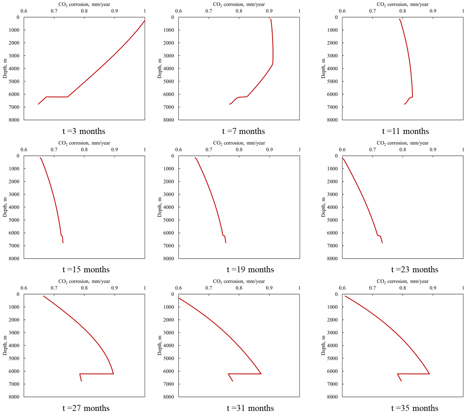 综上,本研究通过一体化模型首次实现了 CO₂井筒腐蚀 “时空演化” 的定量表征,不仅能精准预测不同开发阶段、不同井深的腐蚀风险分布,还可为针对性防腐措施(如局部涂层强化、pH 调控)的制定提供数据支持,对延长油气井服役寿命、保障开发安全性具有重要工程价值。