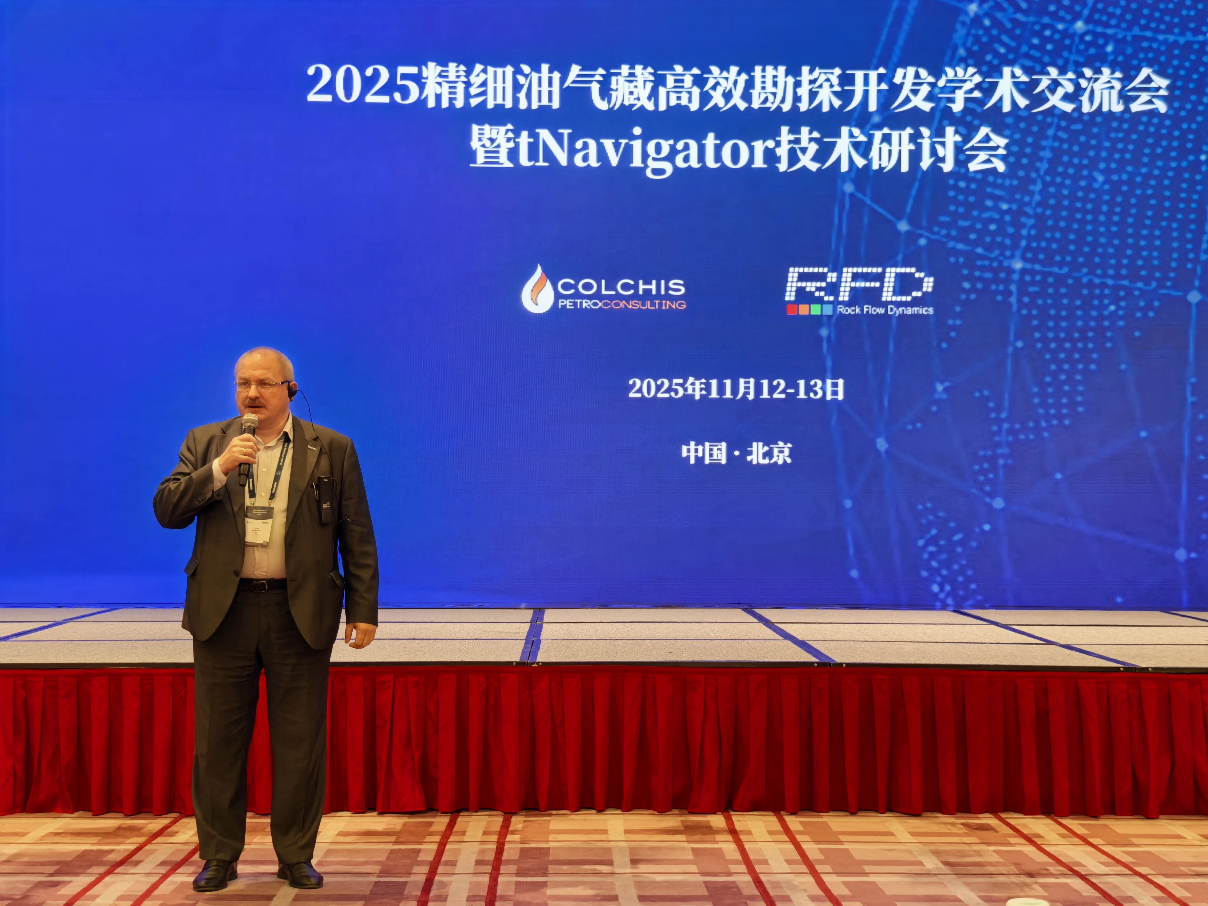 随后,RFD创始人Vasilii发表主题演讲,回顾了tNavigator近二十年的发展历程与全球应用成果,展示了其在世界各地能源企业中的成功案例及不断扩大的用户生态体系。